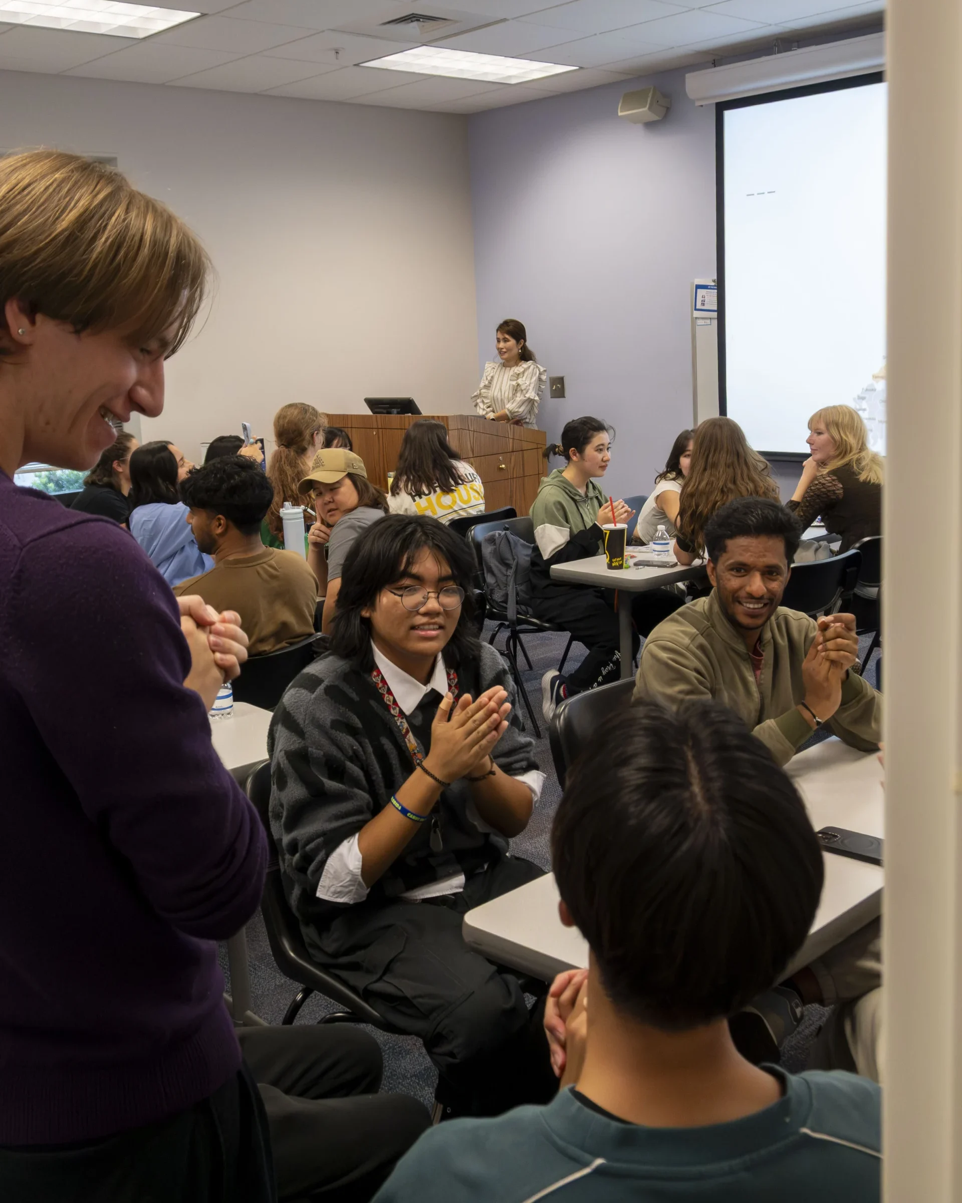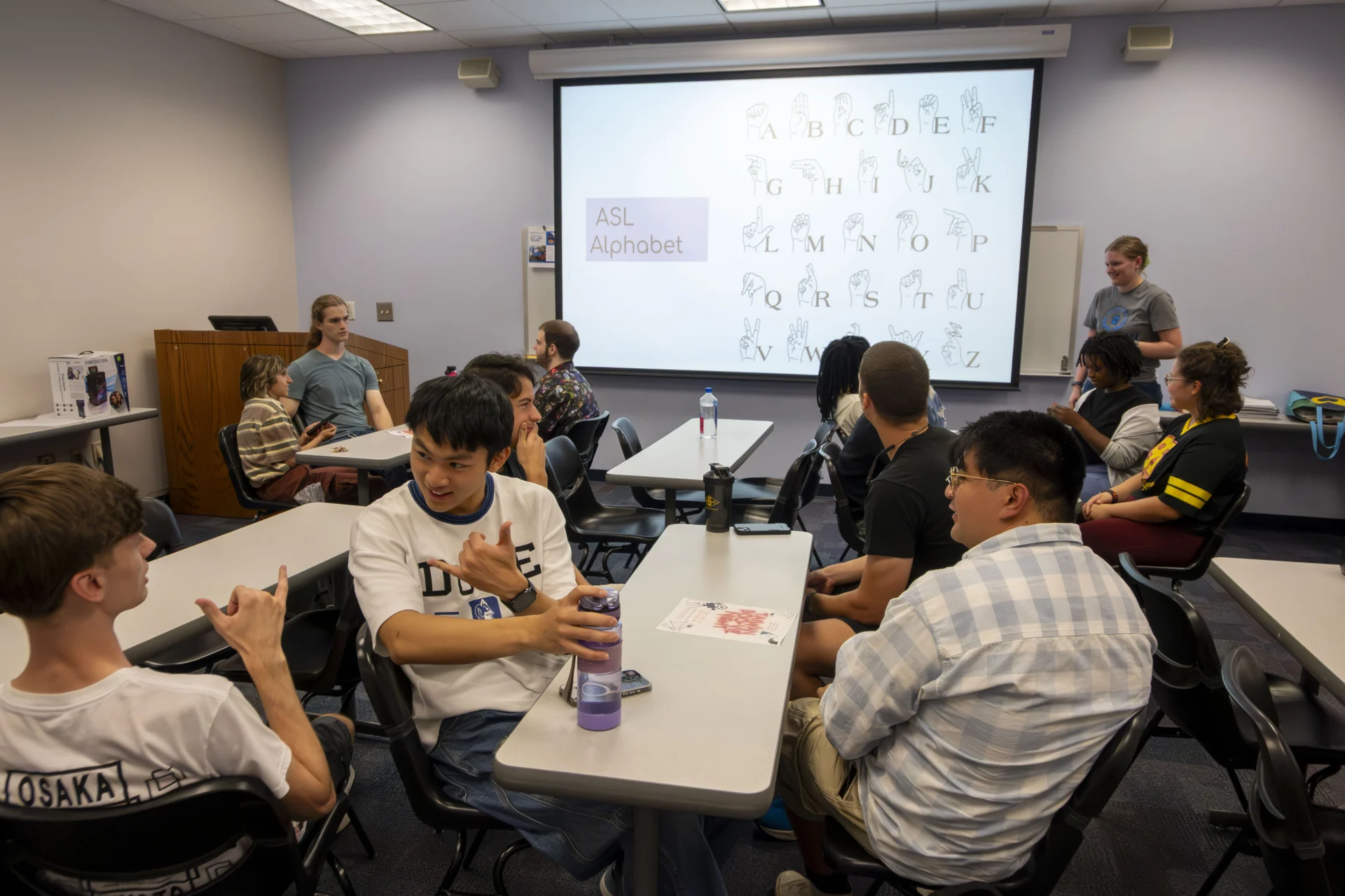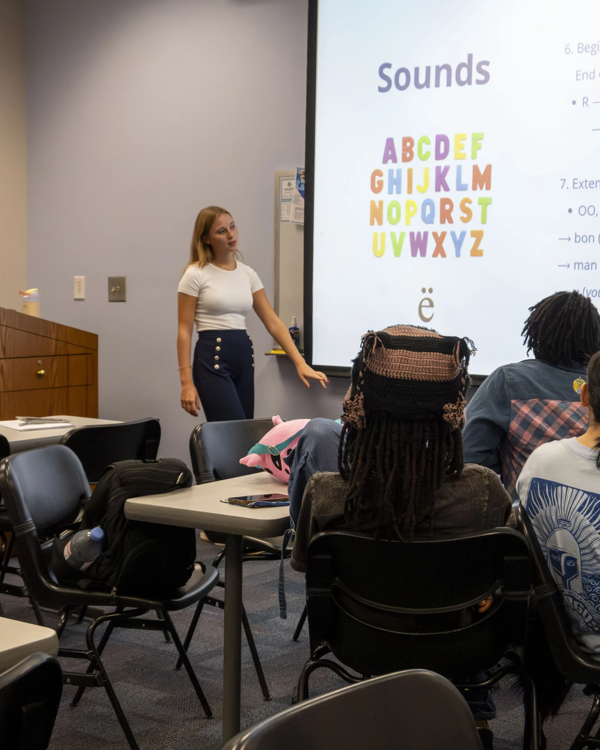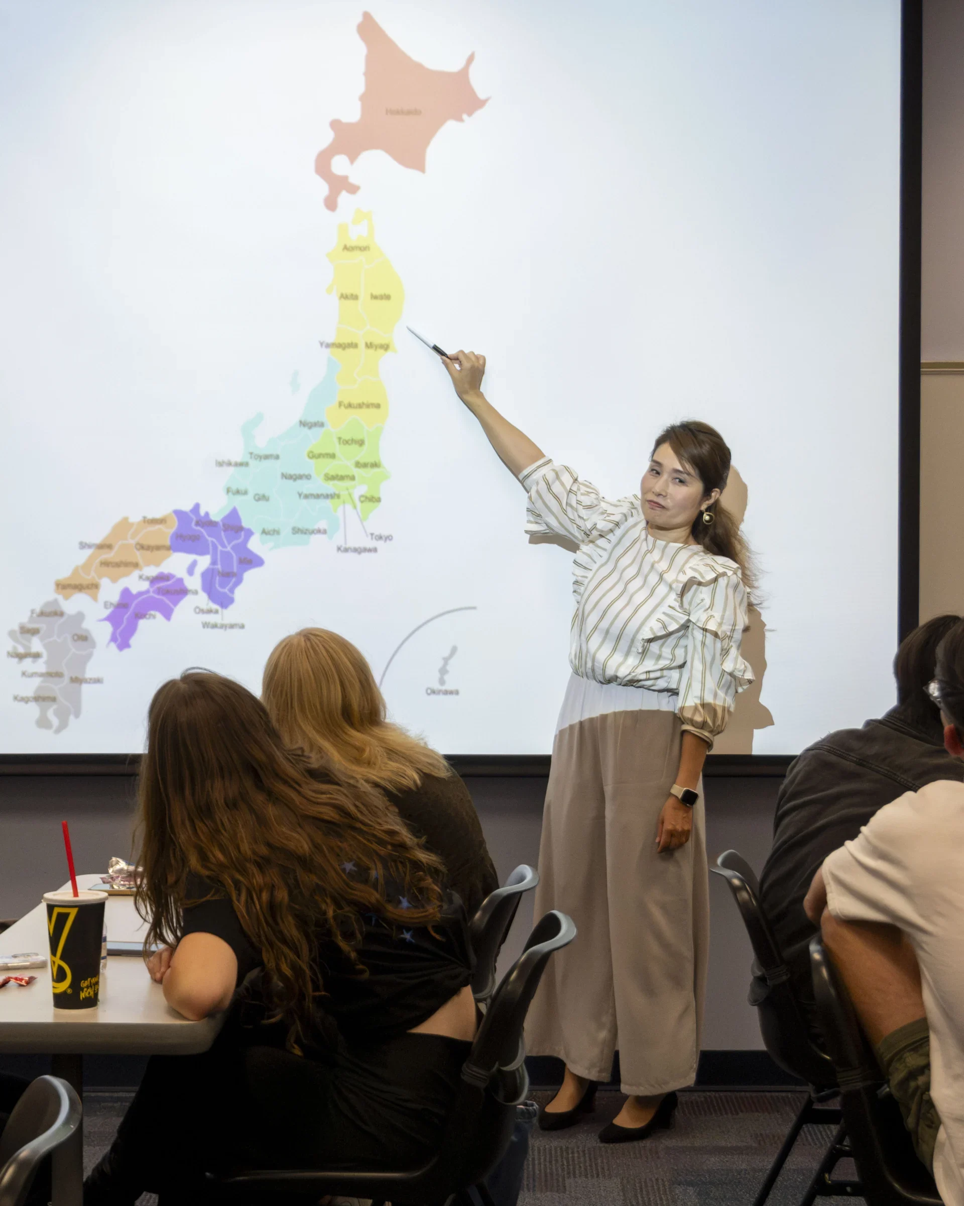 Volunteer service comes in many shapes and sizes, and this opportunity came to me when a friend asked me to photograph the weekly UWF event called Global Talk. Each week at Global Talk a speaker from a different country or culture comes and teaches the participants about their home language and culture. For my volunteer work, I photographed these events, focusing on highlighting each speaker and their interactions with the students.